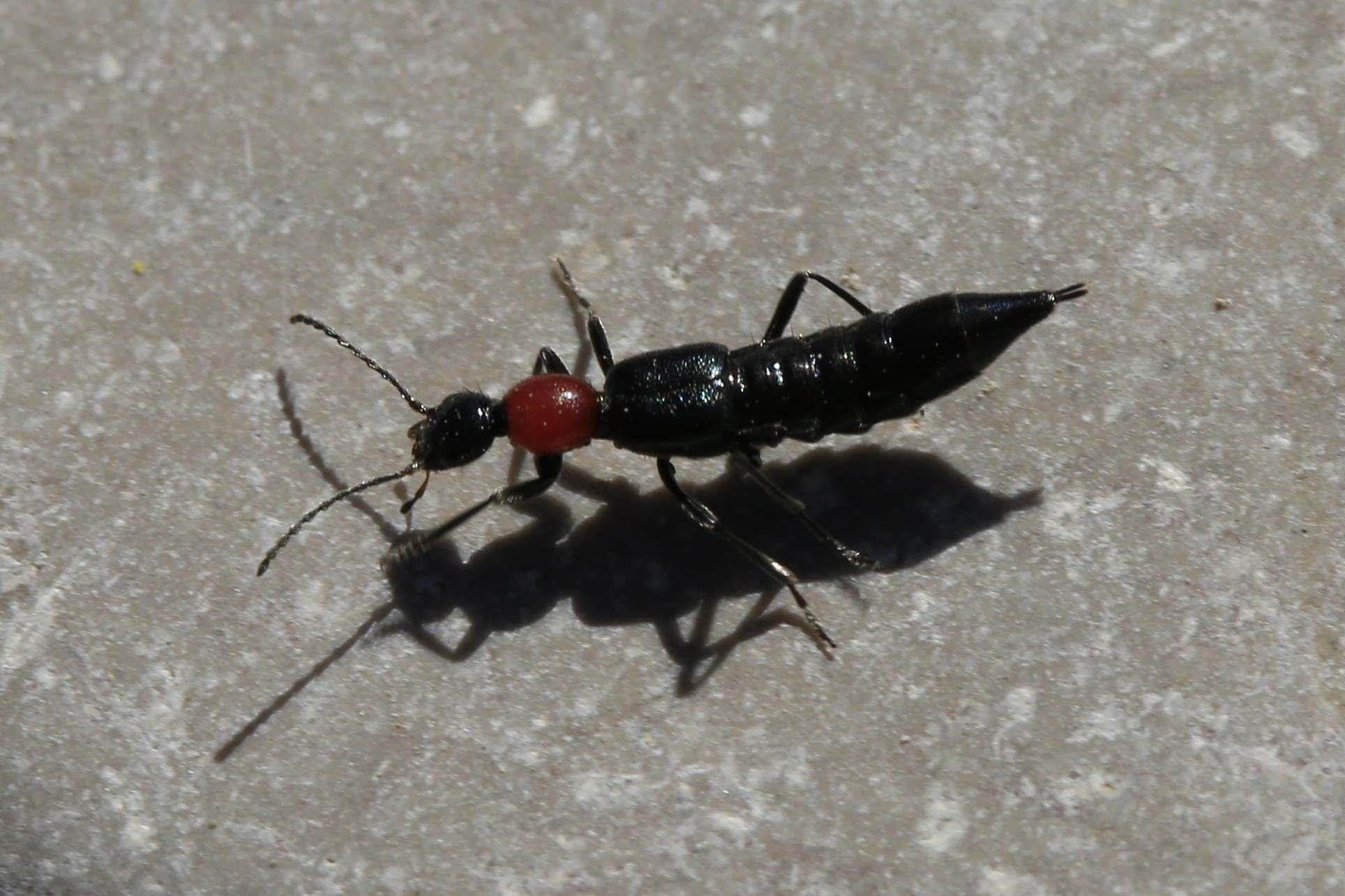 Staphylin noir à corselet rouge
